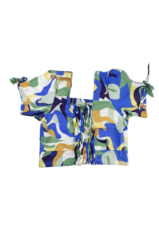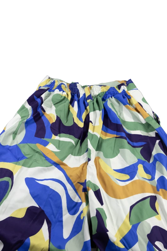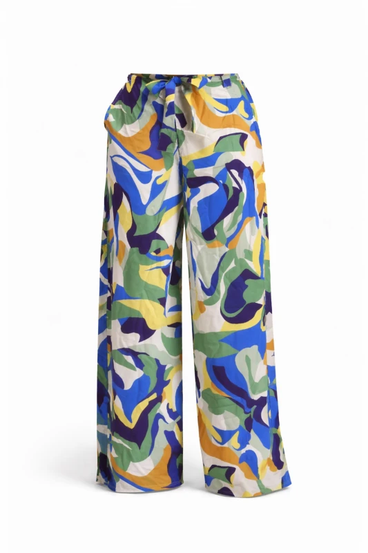 Este conjunto femenino de dos piezas combina frescura, estilo y comodidad en una propuesta versátil y sofisticada. Su estampado abstracto en tonos verdes, azules y mostaza aporta un aire artístico y contemporáneo, ideal para mujeres que buscan destacar con elegancia. El diseño equilibra un top estructurado con pantalón de pierna amplia, creando una silueta estilizada y fluida perfecta tanto para el día como para ocasiones semi-formales.