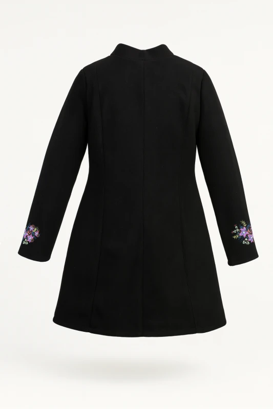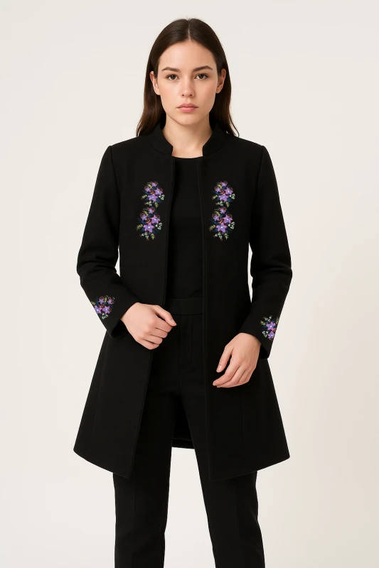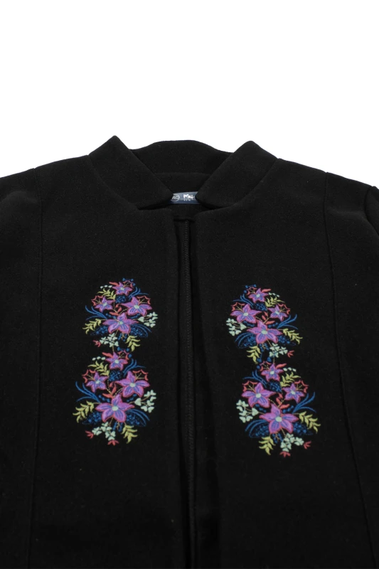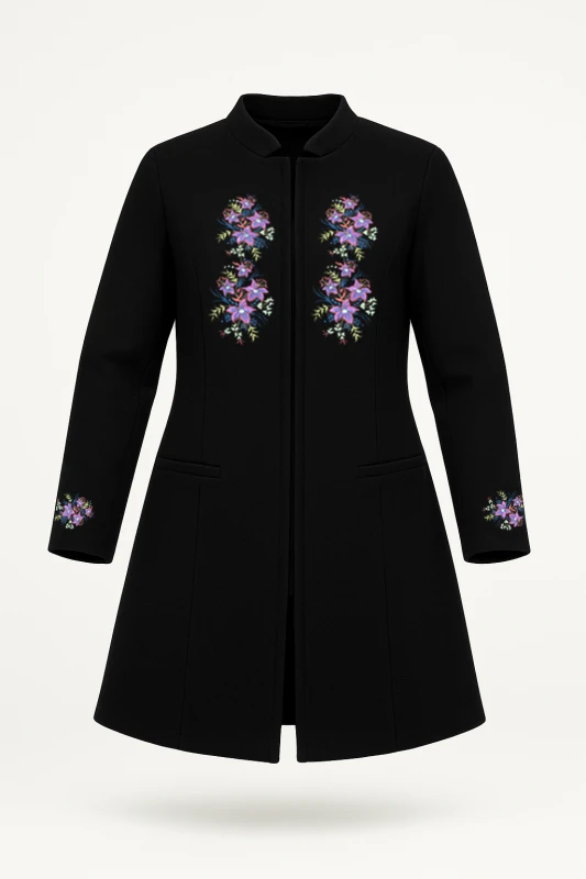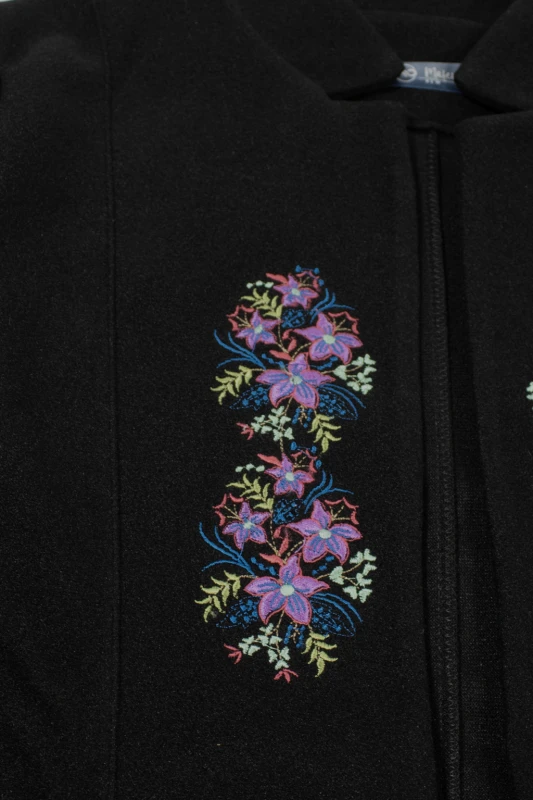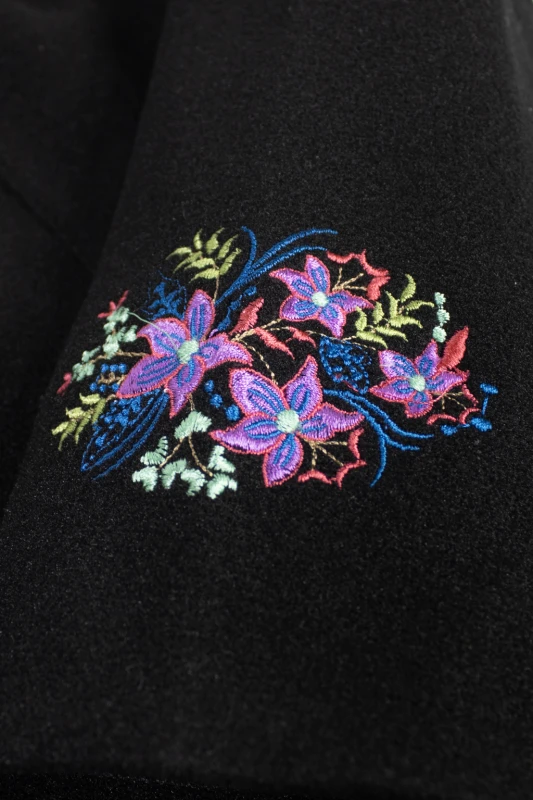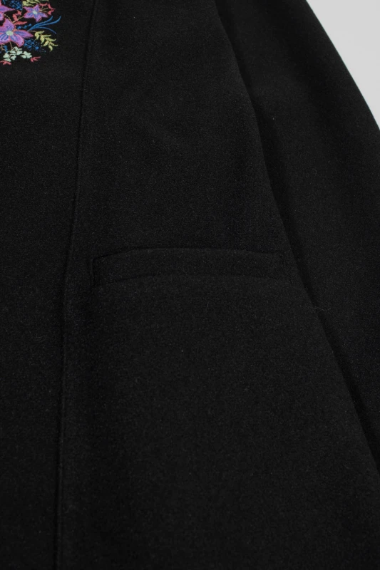 negro de diseño exclusivo, adornado con delicados bordados florales que aportan
