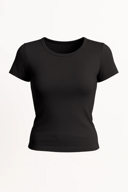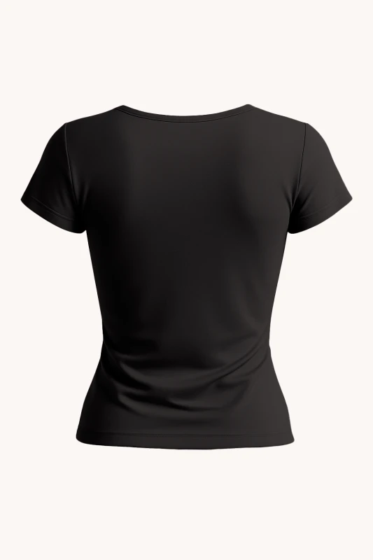 Descubre la camiseta básica negra que se convertirá en tu nueva favorita. Su diseño de corte ajustado realza tu figura sin sacrificar comodidad, mientras que su tejido suave y elástico acompaña cada movimiento. Versátil, moderna y atemporal: es la prenda perfecta para combinar con cualquier outfit, desde looks casuales hasta estilos más elegantes. Si buscas una pieza que siempre te haga ver bien, esta camiseta es la elección ideal.
