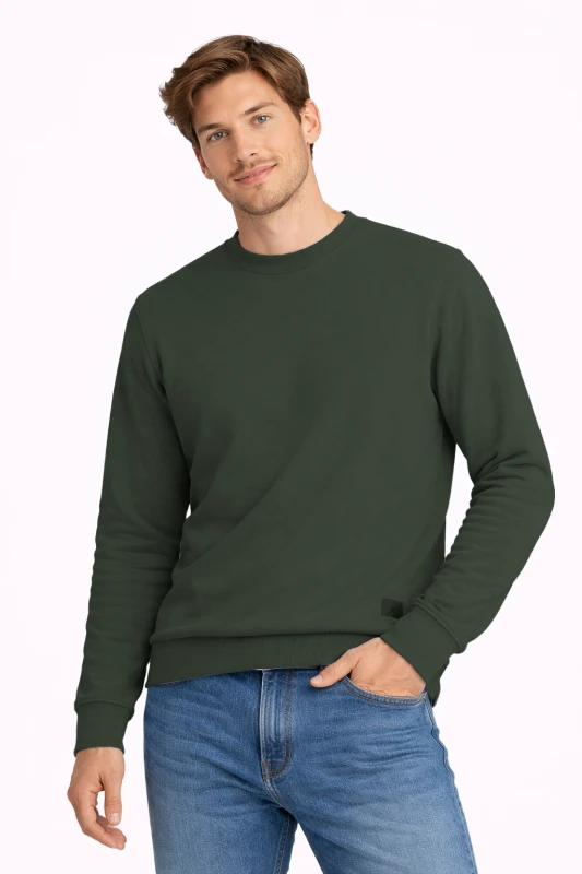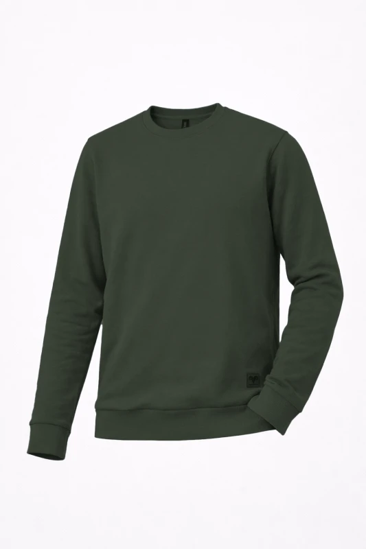 Sudadera básica de cuello redondo para hombre en un tono verde oscuro, perfecta para un estilo casual, fresco y moderno. Su diseño minimalista y limpio la convierte en una prenda esencial para el día a día, aportando comodidad sin perder estética. La silueta equilibrada permite que se adapte al cuerpo de forma natural, mientras que su acabado suave la hace ideal para usar sola o en combinación con otras capas. Es una opción versátil para climas templados o frescos.