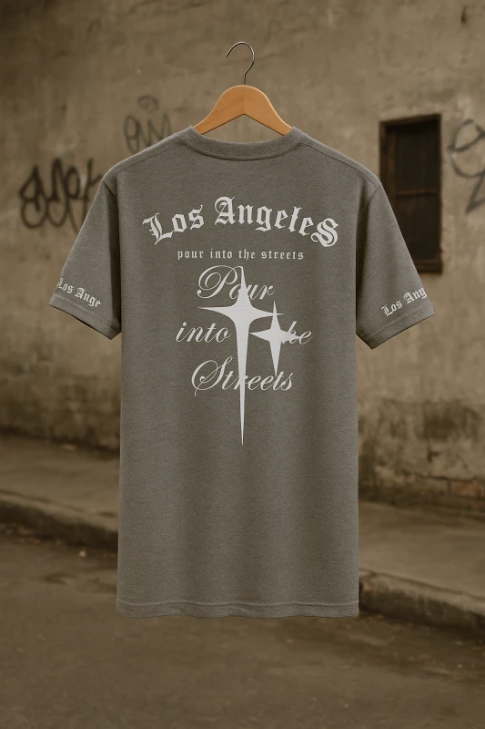 Su diseño minimalista con tipografía gótica “Los Angeles”