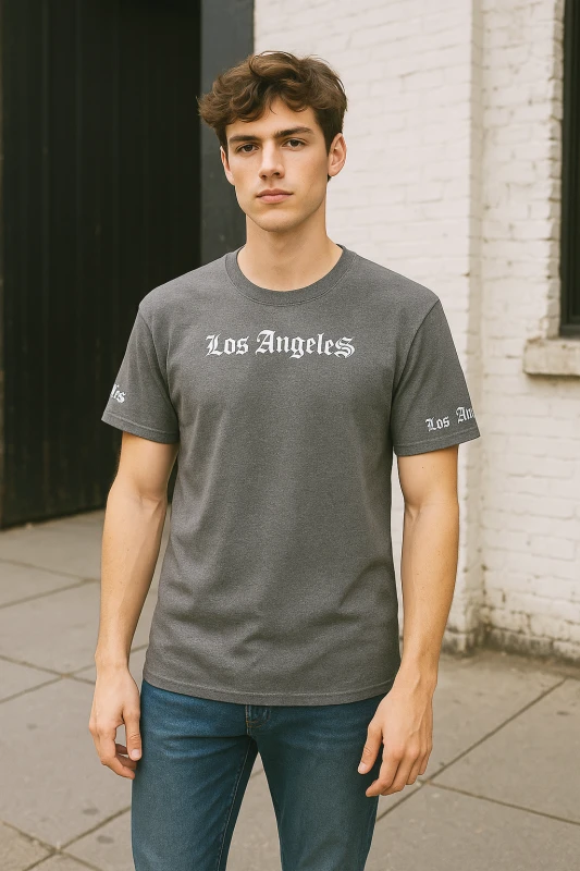 Esta camiseta color gris con estampado “Los Angeles” combina comodidad, estilo urbano y versatilidad en una prenda esencial para el uso diario. Fabricada con una mezcla de algodón y poliéster, ofrece una textura suave al tacto, buena transpirabilidad y resistencia al uso frecuente, garantizando durabilidad sin perder su forma original.