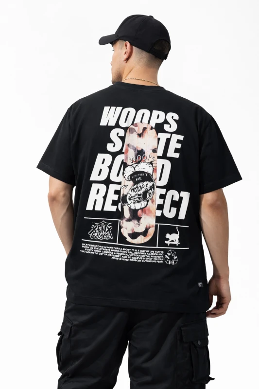 Confeccionada en un tejido suave y resistente, garantiza durabilidad y confort durante todo el día. Su color negro clásico la convierte en una prenda versátil y fácil de combinar con pantalones cargo, jeans o joggers, adaptándose a distintos estilos urbanos. Es una opción ideal para quienes buscan una camiseta llamativa, actual y alineada con las tendencias del street style.