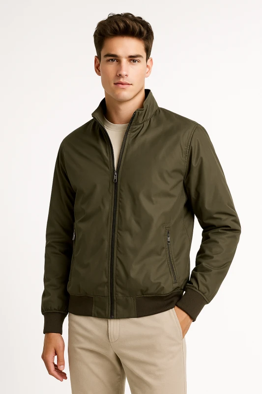 bomber con detalles refinados como el cuello alto, que aporta un toque elegante