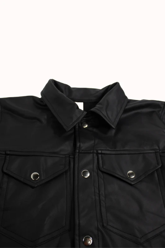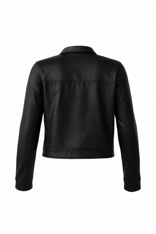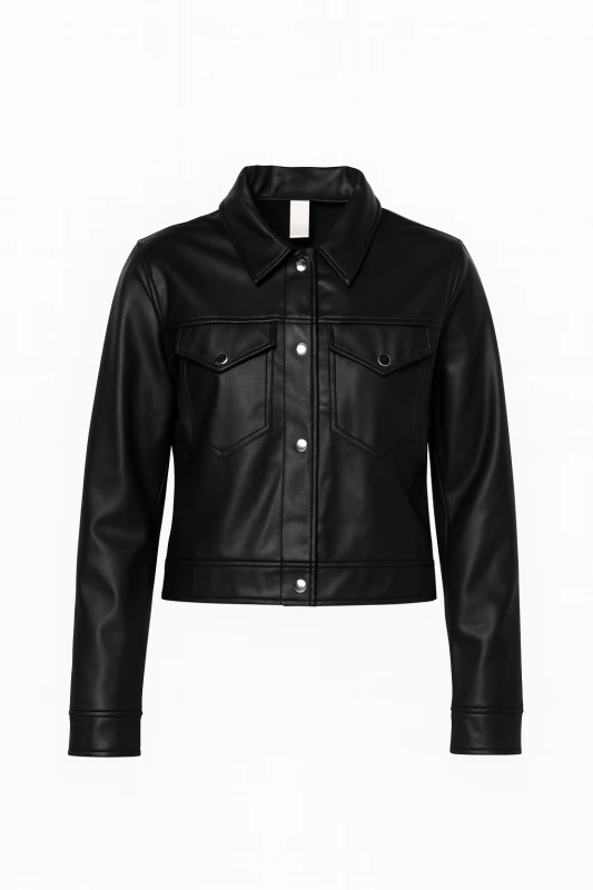 moderno y actitud urbana con esta chaqueta corta de cuero sintético negro para
