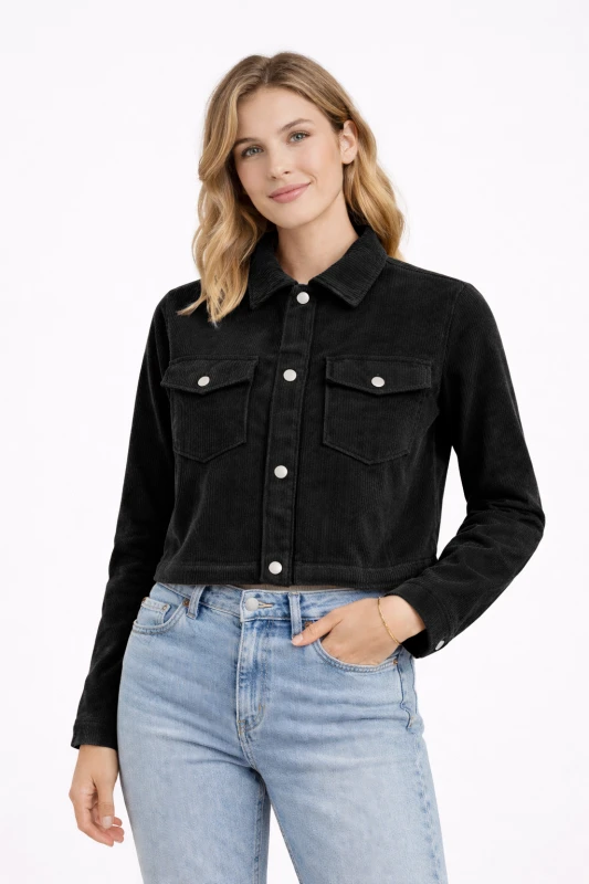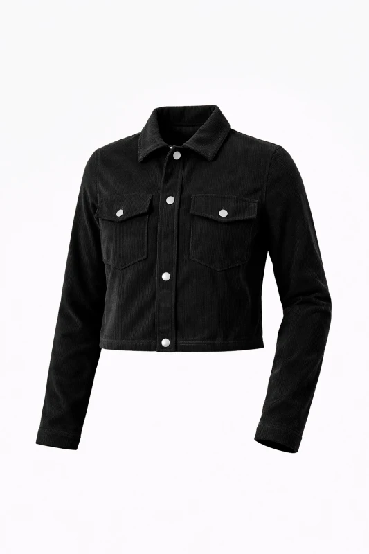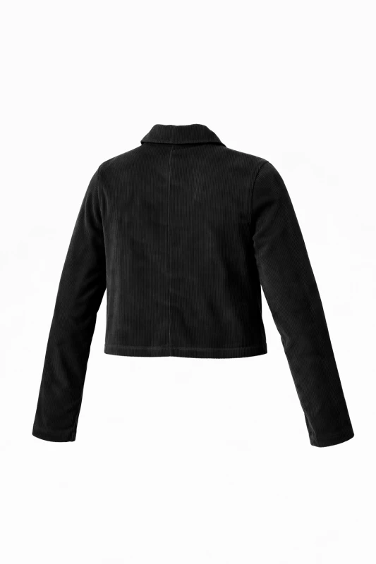 Chaqueta corta de estilo moderno con inspiración clásica, confeccionada en un elegante tono negro que aporta calidez y versatilidad. Su diseño estructurado y minimalista la convierte en una prenda ideal para elevar cualquier look casual o urbano. Presenta un acabado tipo gamuza que le da un aspecto suave y sofisticado, mientras que su corte a la cintura estiliza la silueta y permite combinarla fácilmente con jeans, faldas o pantalones de tiro alto. Es una pieza llamativa pero fácil de llevar, perfecta para entretiempo o para complementar outfits en capas.