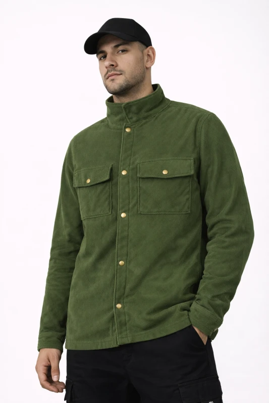 Esta chaqueta camisa en color verde militar combina a la perfección funcionalidad y estilo contemporáneo. Su diseño estructurado con bolsillos frontales y cierre de botones aporta un look robusto y masculino, ideal para entretiempo y para completar outfits urbanos o casuales. Confeccionada en tejido resistente y suave al tacto, es una prenda versátil que se adapta tanto al uso diario como a looks más cuidados.