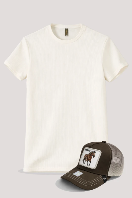 COMBO DE CAMISETA BÁSICA DE TELA GALLETA Y GORRA MARRÓN