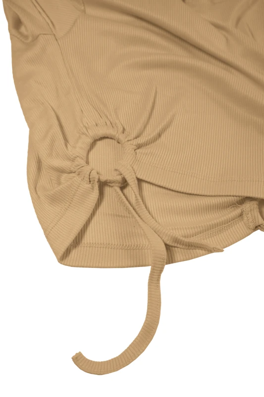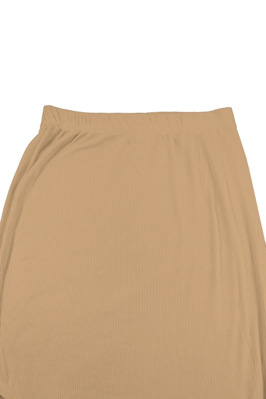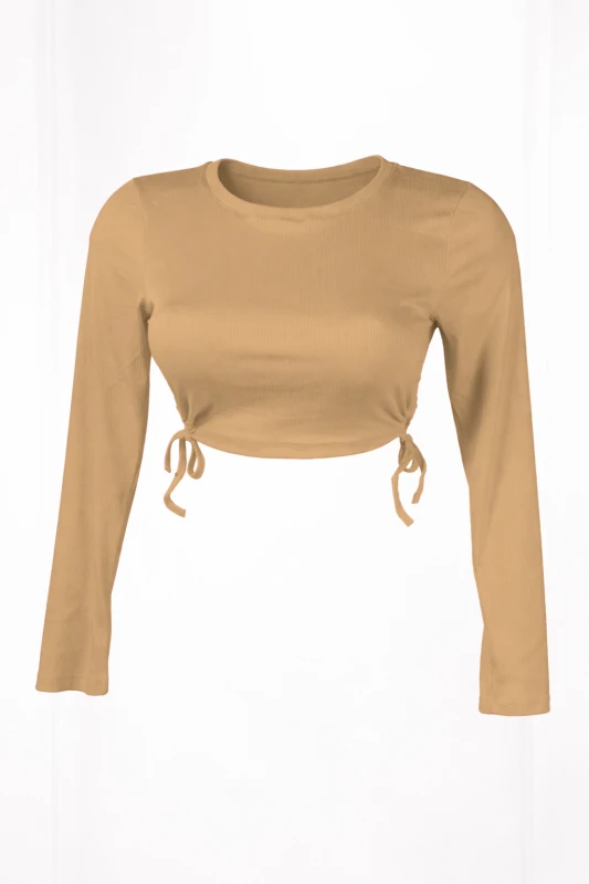 Este conjunto femenino destaca por su elegancia minimalista y un diseño sensual cuidadosamente equilibrado. Está compuesto por un top crop de manga larga y una falda larga de tiro alto, ambos en un tono camel que transmite feminidad, suavidad y sofisticación. El diseño ceñido al cuerpo resalta la silueta de forma estilizada, manteniendo un look moderno y atractivo.