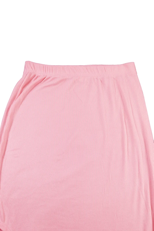 Este conjunto femenino destaca por su elegancia minimalista y un diseño sensual cuidadosamente equilibrado. Está compuesto por un top crop de manga larga y una falda larga de tiro alto, ambos en un color rosa pastel que transmite feminidad, suavidad y sofisticación. El diseño ceñido al cuerpo resalta la silueta de forma estilizada, manteniendo un look moderno y atractivo.