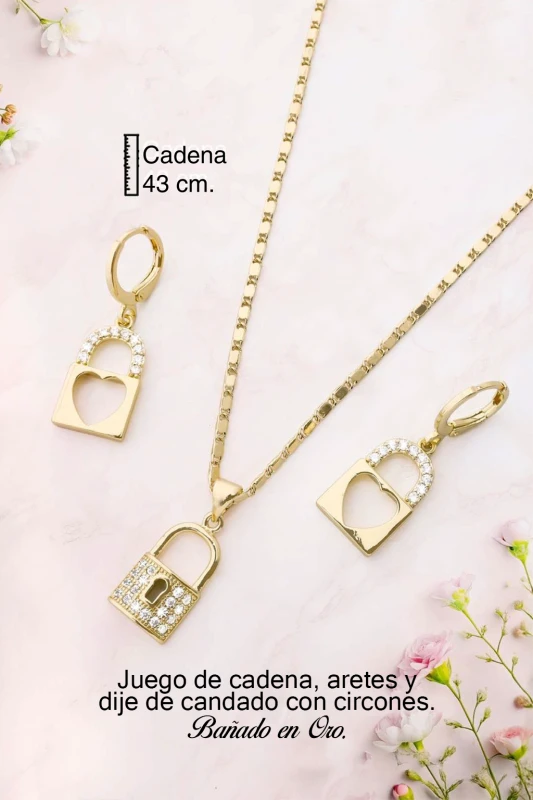Este elegante set de joyas con diseño de candado combina estilo, brillo y
