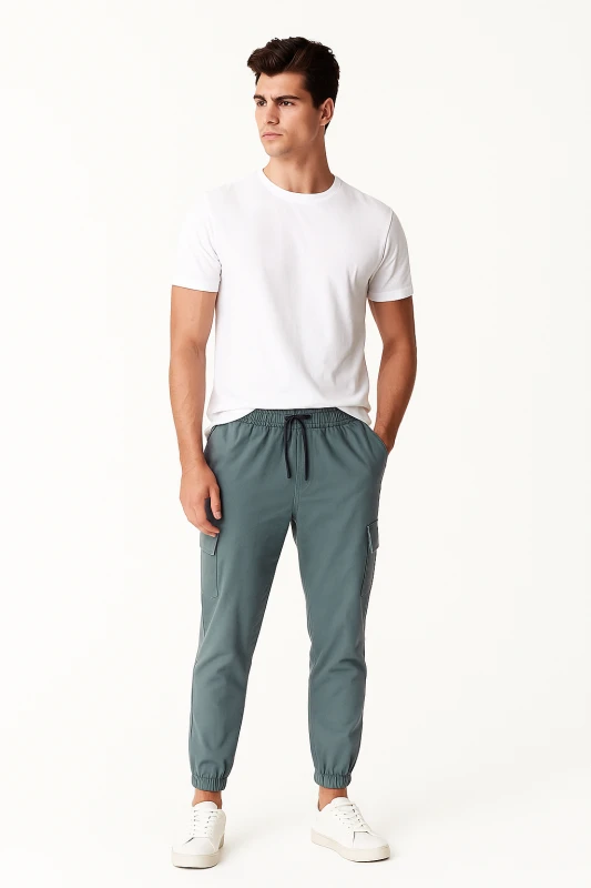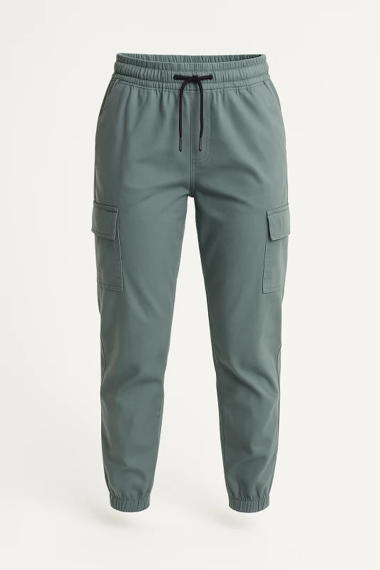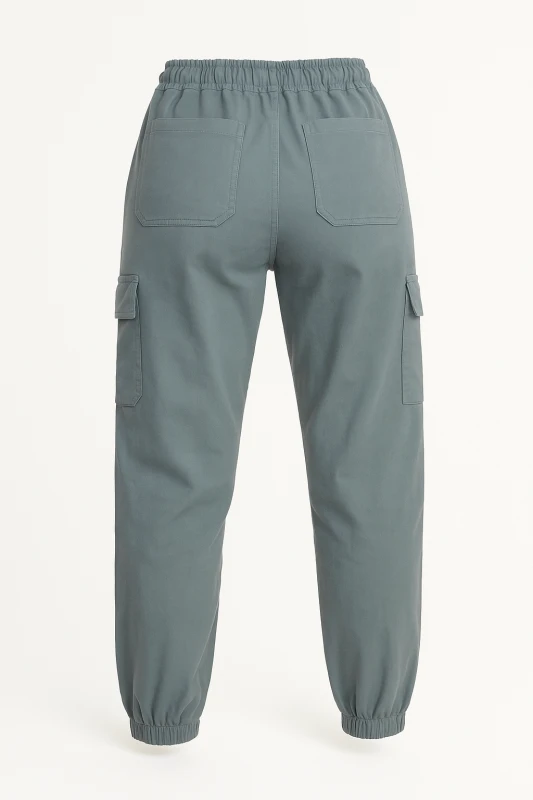 La cintura elástica con cordón ajustable permite un calce perfecto y personalizado, mientras que los puños elásticos en los tobillos aportan una silueta moderna y favorecedora. Los bolsillos laterales y tipo cargo no solo son prácticos, sino que también suman un detalle urbano al diseño.