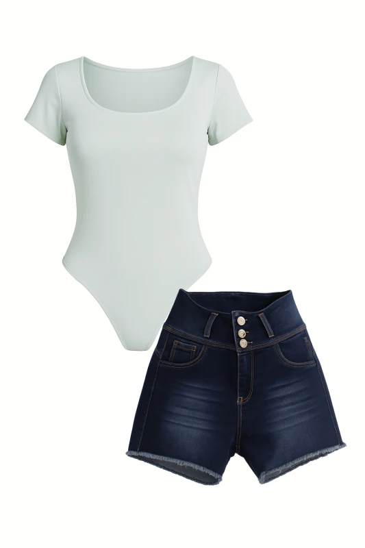 SHORT CASUAL DE DENIM CON TRIPLE BOTÓN