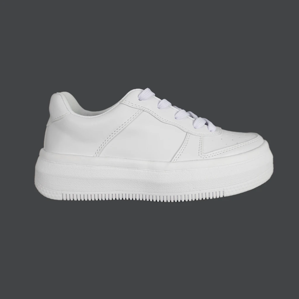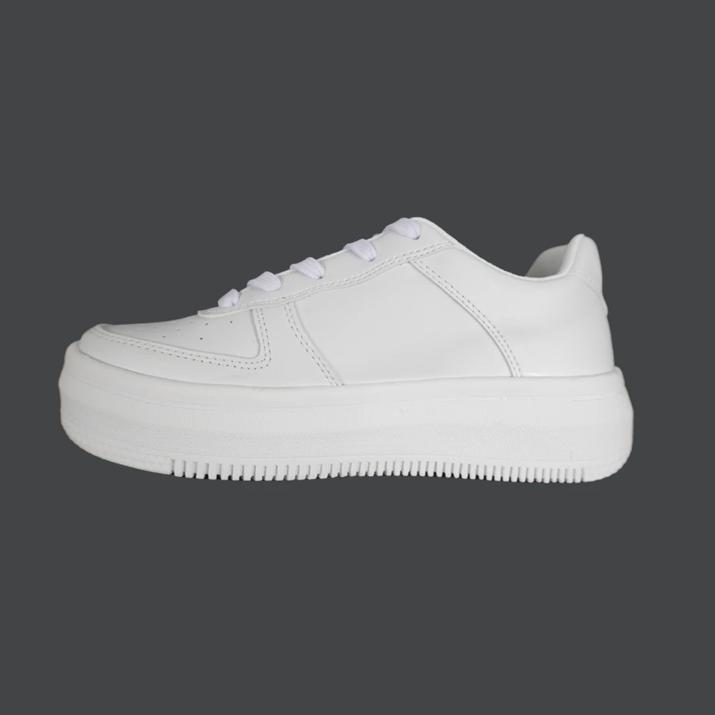 Zapatillas urbanas blancas de estilo moderno, diseñadas para brindar comodidad, versatilidad y un look minimalista que combina con cualquier outfit. Su diseño de suela gruesa tipo plataforma aporta mayor altura y confort al caminar, mientras que el acabado liso en color blanco las convierte en el complemento perfecto para looks casuales, urbanos o deportivos. Ideales para uso diario, estas zapatillas ofrecen resistencia, estilo y comodidad en cada paso.