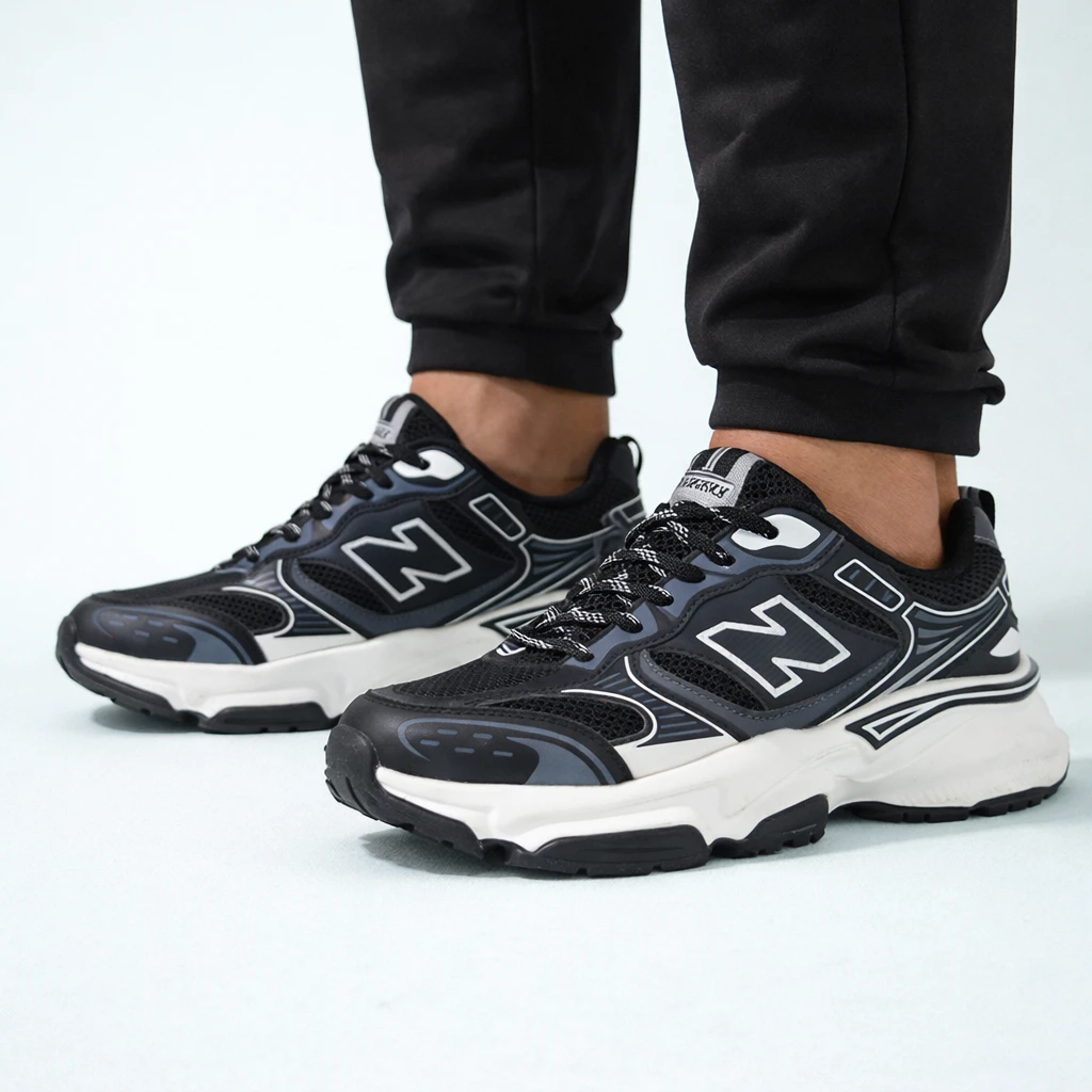 Su parte superior mezcla paneles textiles con refuerzos sintéticos que aportan estructura, resistencia y un look técnico muy actual. La suela de gran volumen no solo añade carácter visual, sino que también ofrece una pisada estable, amortiguada y segura. El interior acolchado envuelve el pie con suavidad, brindando sensación de soporte desde el primer uso.