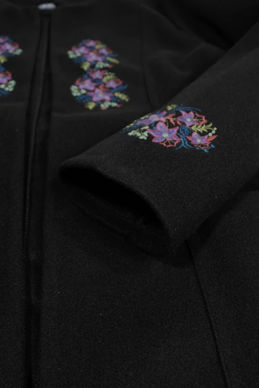 negro de diseño exclusivo, adornado con delicados bordados florales que aportan
