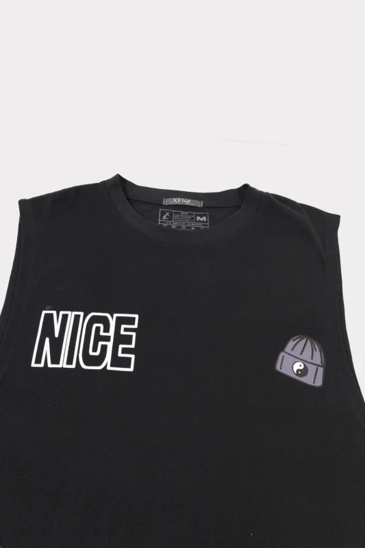 Camiseta sin mangas de estilo urbano en color negro, diseñada para quienes buscan un look moderno y desenfadado. Presenta un estampado gráfico llamativo en la parte trasera, con ilustración y tipografía de gran tamaño que aportan personalidad y estilo streetwear. Su corte recto y cómodo la hace perfecta para el uso diario, actividades casuales o outfits relajados, combinando fácilmente con jeans o pantalones cargo.