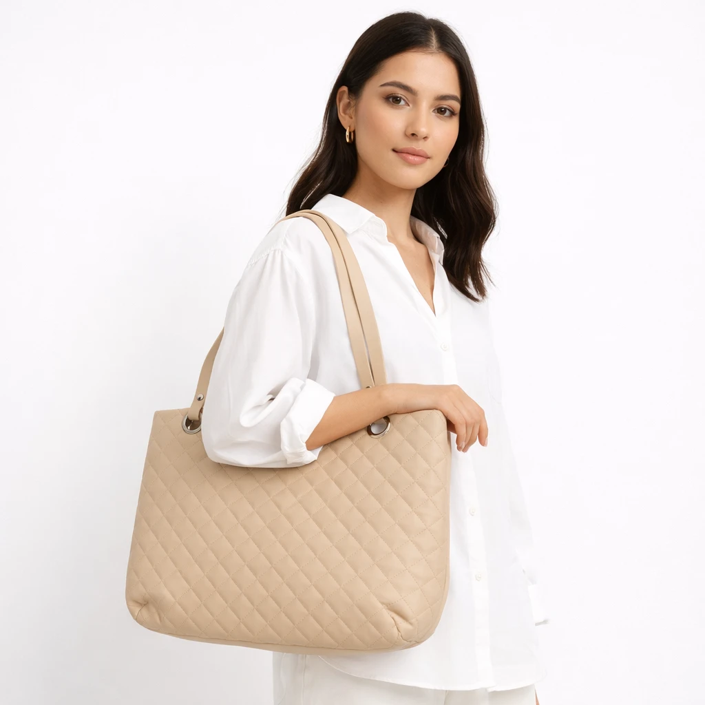 Este bolso tote acolchado en color beige con billetera a juego es la combinación perfecta de elegancia, amplitud y funcionalidad. Diseñado para mujeres que necesitan espacio sin perder estilo, este set es ideal para el trabajo, la universidad, viajes o el uso diario. Su diseño moderno con textura capitonada y tono neutro lo convierte en un accesorio versátil que combina con cualquier outfit.