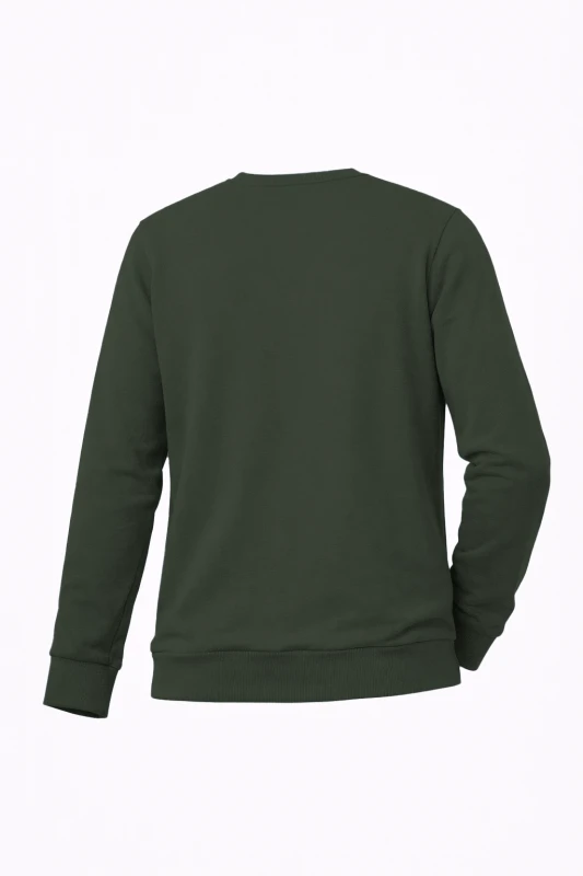 Sudadera básica de cuello redondo para hombre en un tono verde oscuro, perfecta para un estilo casual, fresco y moderno. Su diseño minimalista y limpio la convierte en una prenda esencial para el día a día, aportando comodidad sin perder estética. La silueta equilibrada permite que se adapte al cuerpo de forma natural, mientras que su acabado suave la hace ideal para usar sola o en combinación con otras capas. Es una opción versátil para climas templados o frescos.
