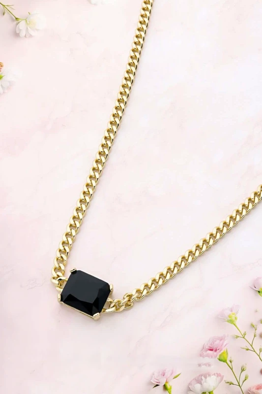 casuales, nocturnos o incluso formales. El dije cuadrado con piedra negra