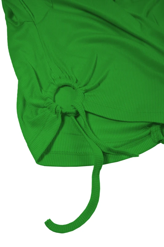 Este conjunto femenino destaca por su elegancia minimalista y un diseño sensual cuidadosamente equilibrado. Está compuesto por un top crop de manga larga y una falda larga de tiro alto, ambos en un color verde. El diseño ceñido al cuerpo resalta la silueta de forma estilizada, manteniendo un look moderno y atractivo.