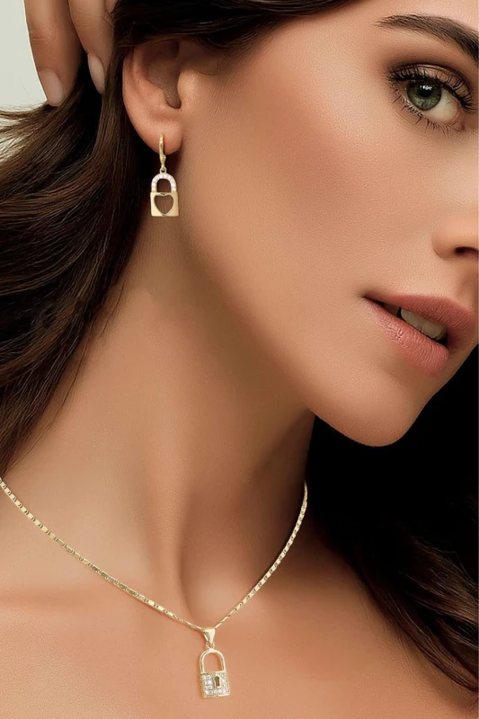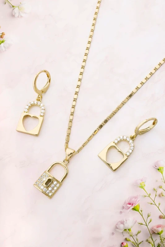 Este elegante set de joyas con diseño de candado combina estilo, brillo y