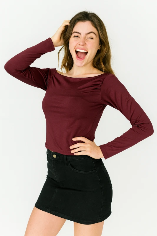 Este top de manga larga destaca por su diseño asimétrico elegante y moderno, ideal para quienes buscan una prenda con personalidad sin perder comodidad. Su tela stretch suave se adapta al cuerpo de manera favorecedora, ofreciendo un look sofisticado perfecto para ocasiones casuales, salidas nocturnas o eventos donde quieras resaltar un estilo único. El detalle caído sobre un hombro y los pliegues sutiles en la parte superior añaden un toque chic que diferencia esta prenda de un top básico tradicional.